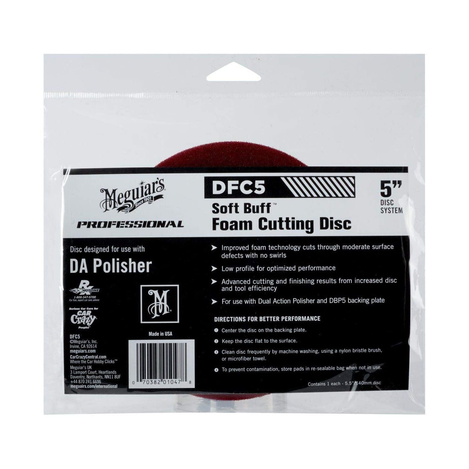 Discul este compatibil cu masini orbitale Dual Action si talere de 5 inch, fiind ideal pentru utilizare impreuna cu compusii abrazivi Meguiar’s. Ofera o performanta constanta, durabilitate ridicata si rezultate profesionale.