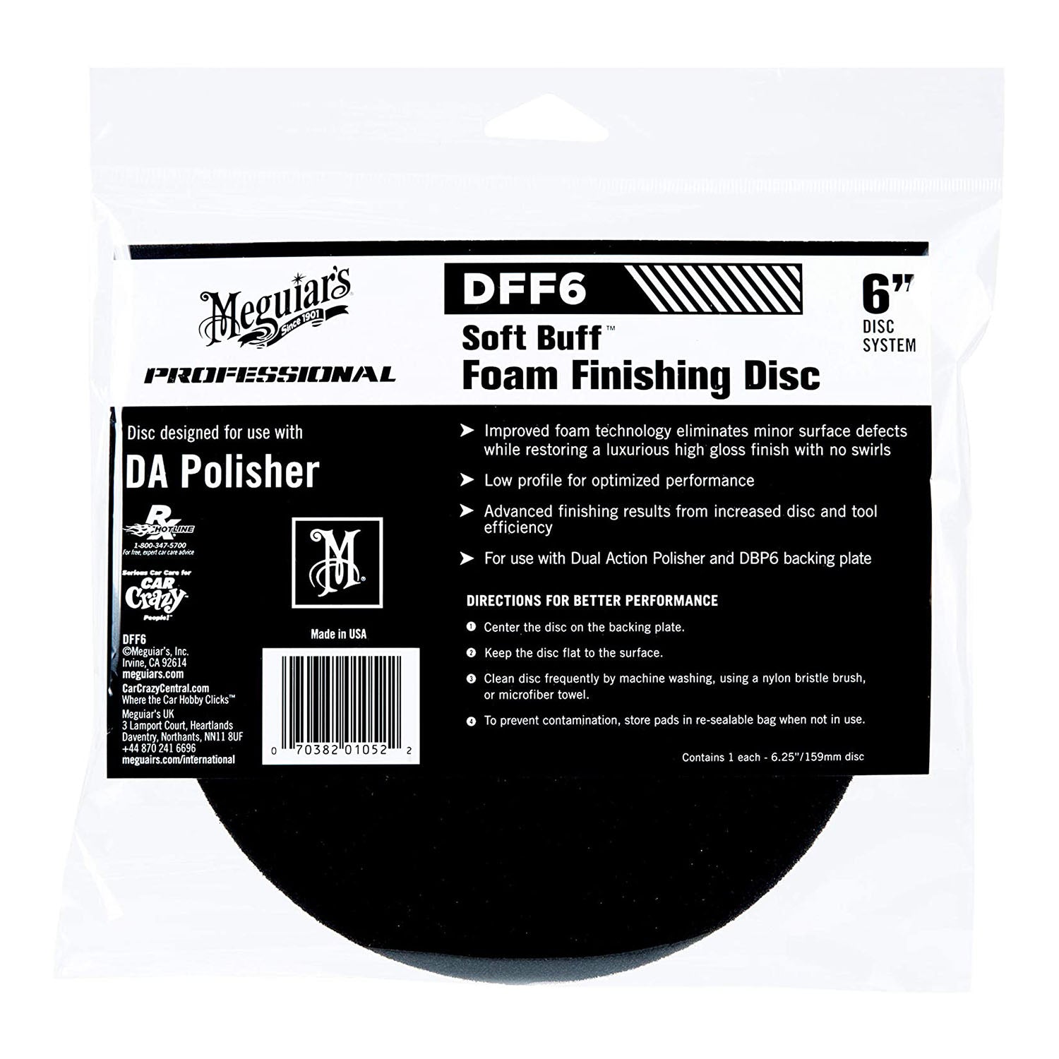 Meguiar's Foam Finishing Disc este un burete profesional de 152.4 mm (6 inch), conceput pentru etapa finala de finisare si aplicarea cerii sau polishului fin. Spuma ultra-moale asigura o aplicare uniforma a produsului si un finisaj perfect, fara urme, holograme sau reziduuri.