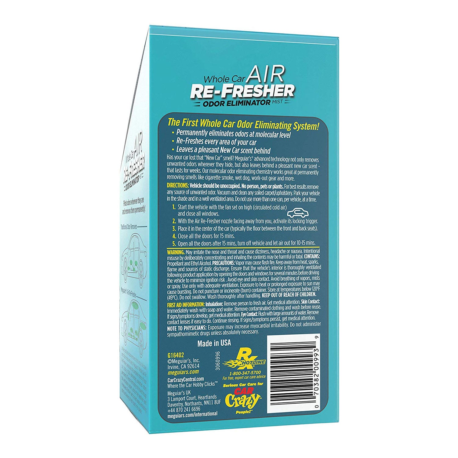 Meguiar's Whole Car Air Re-Fresher New Car Scent este un odorizant profesional conceput pentru a elimina mirosurile neplacute din intregul sistem de ventilatie al vehiculului. Formula sa neutralizeaza mirosurile direct din sursa, lasand un parfum placut de masina noua care dureaza saptamani intregi.