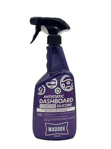 MADDOX ANTISTATIC DASHBOARD SILICONE este un amestec de siliconi, aditivi speciali si conservanti conceput pentru a proteja suprafetele din plastic, piele, lemn, vinilin s.a. Protejeaza suprafetele pe care se aplica de actiunea razelor ultraviolete, renoveaza culorile acestora si confera un efect antistatic cu rol de a indeparta praful si murdaria.
