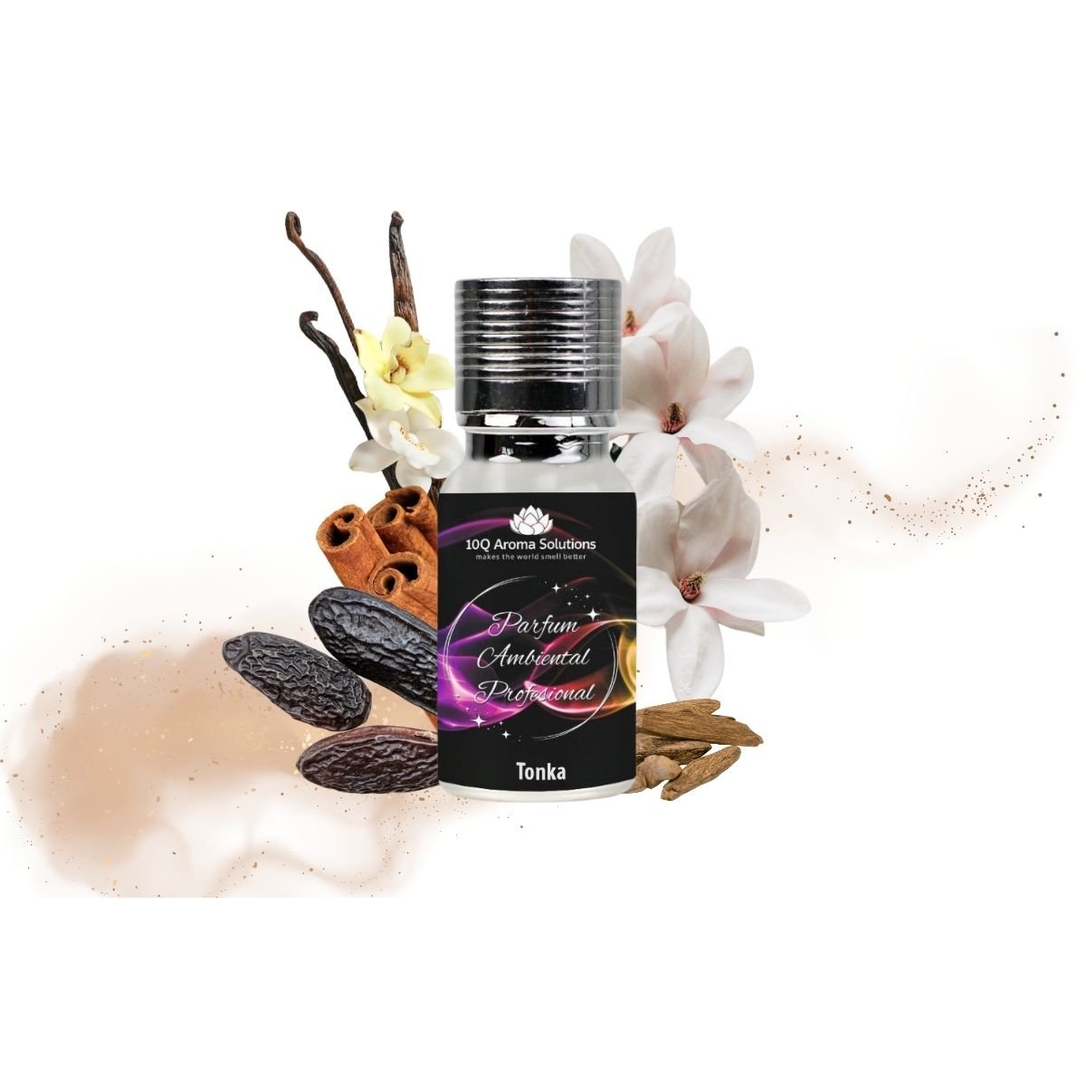 Parfum Ambiental Profesional Tonka: o aroma calda, rafinata si usor gurmanda, cu note de tonka, vanilie si migdals. Ideal pentru spatii care cauta confort, eleganta si o atmosfera relaxanta.